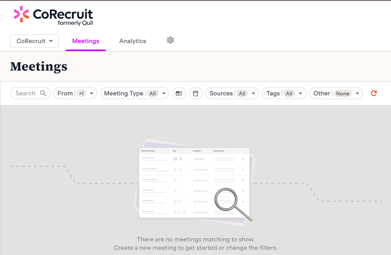 Start by logging into your CoRecruit account. Once logged in, you'll be directed to the meetings page.