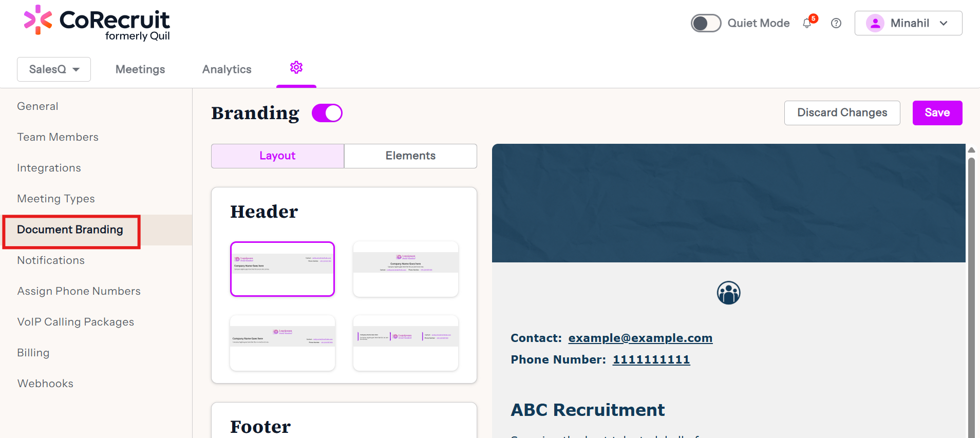 CoRecruit now supports document branding, allowing your organization to personalize all documents downloaded through CoRecruit with your logo, custom headings, and footer.