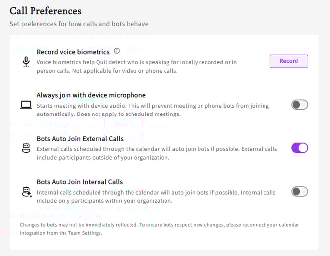 - Under Call Preferences, you will see the option to Record Voice Biometrics.