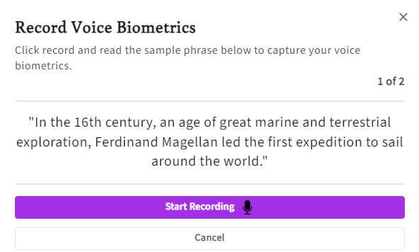 Step 4: Start Recording Your Voice Biometrics