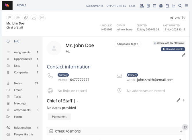 Ezekia "People" fields can be updated automatically or manually via CoRecruit. CoRecruit will take the information from your meeting and fill in the blanks on your records.
