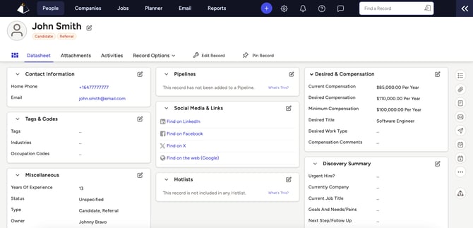 CoRecruit's Top Echelon integration allows linking records with People