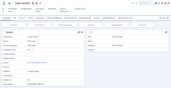 After notes are submitted they will appear in the “Summary” section on the candidate or contact you selected.