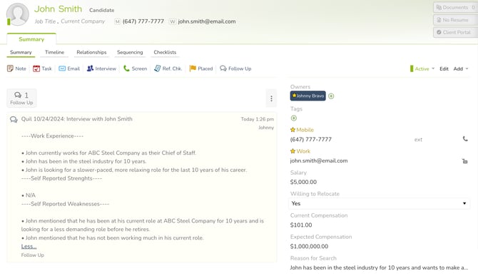 CoRecruit offers an integration with Crelate. By connecting your account, you allow CoRecruit to link meetings and have notes automatically pushed into your existing records. No more copy and paste.