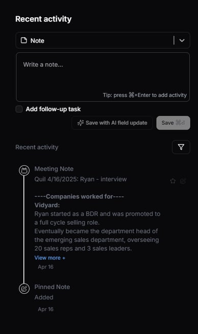 After notes are submitted, they will appear in the Recent Activity section on the Person record you selected.