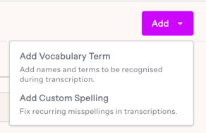 - As team lead or admin, keep this list maintained as your team’s work evolves. A well-maintained vocabulary leads to noticeably cleaner transcripts over time.