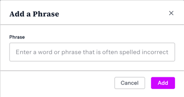 - In the modal that appears, type the word or phrase in the "Phrase" field. You can enter a single word or a phrase of up to 6 words.